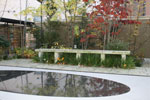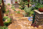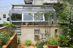 コッツウェル産の砂利と板石と使い庭全体に統一感を持たせた。ガーデニングが趣味である奥様のために温室とレイズドベッド(かさ上げ花壇)を設けた。プランターや花壇に寄せ植えされている草花は奥様が温室で栽培されている。 |