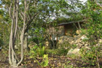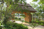 瀬戸内海に面する1,200坪の敷地内に建てられた純和風建築料亭の修景。 落葉樹を主とした雑木林風の庭園。散策路、萱葺門、土塀、板塀、井戸、猪の積などの構築物全て雑木林に馴染むようにデザインした。 ブナ、クヌギ、コナラ、ネムノキやフユイチゴ、リョウメンシダ、ベニシダ、イカリソウなど 自然林を散策しているイメージになるように植栽樹種やグランドカバーを選択した。 |